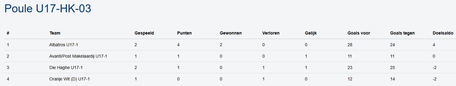 Avanti | Post Makelaardij U17-1 liet in haar eerste competitiewedstrijd een 6-3 voorsprong met de rust bijna helemaal uit haar handen glippen. Een zeer sterke fase van Die Haghe vlak na rust met een run van zes doelpunten achter elkaar naar 6-9 was bijna beslissend. Met een aantal (vak)wissels wisten de Avanti-coaches nog net een gelijkspel eruit te halen. Na de 7-11 waren het namelijk Wilco, Fleur, Jesper en Julia die een punt veilig stelden.