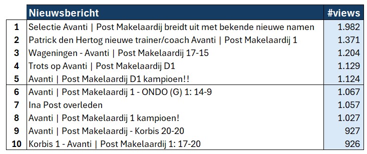 Het is weer die tijd van het jaar. De oliebollen liggen klaar, de vuurpijlen staan op scherp, en overal vliegen de “Top 10 van 2025”-lijstjes je om de oren. Van de best beluisterde nummers tot de meest gekke kattenfilmpjes, iedereen telt af met lijstjes. En wij? Wij laten ons als korfbalvereniging natuurlijk niet kennen. Ook wij hebben een lijstje. Geen top 2000, maar wél een top 10 van de meest gelezen nieuwsberichten op onze website.