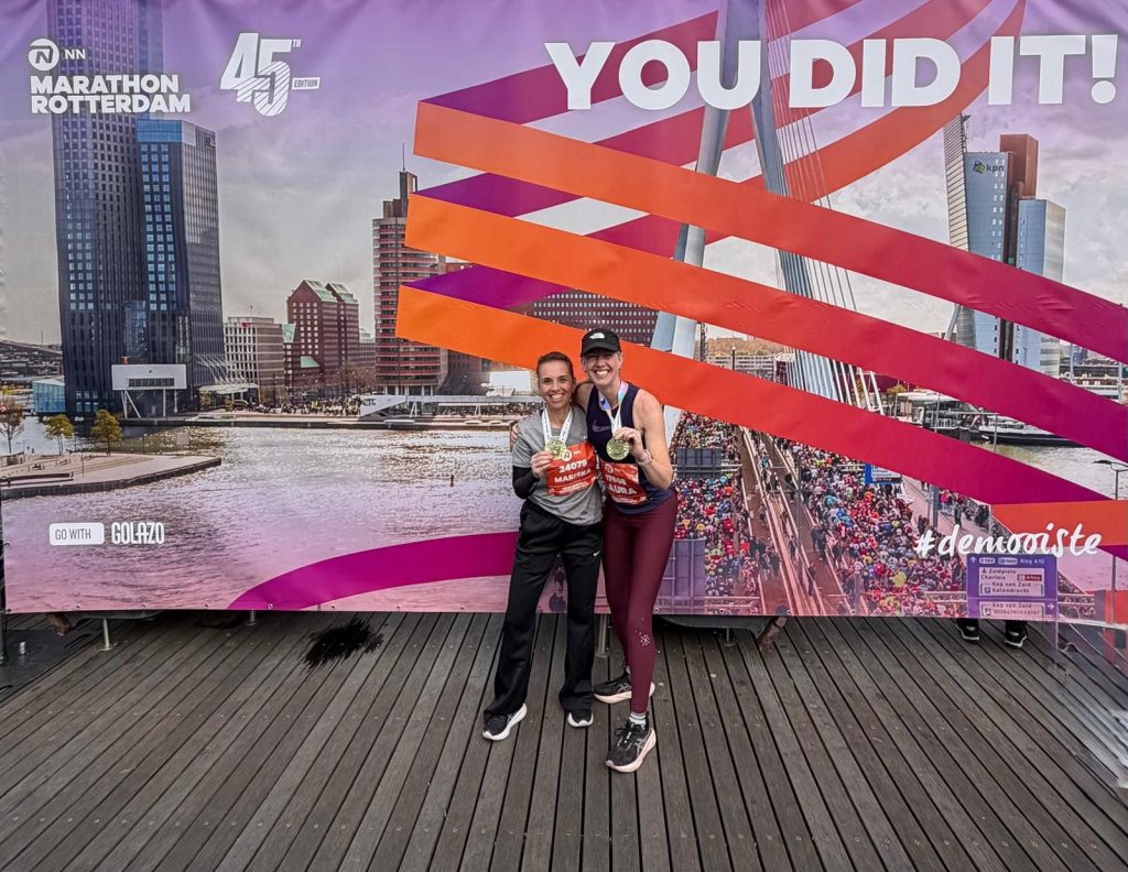 Laura van Leersum en Mariska Zuidervaart liepen samen en toonden na afloop dan ook trots samen hun medaille. Laura in een tijd van 4:24:47, Mariska deed het zeven minuten sneller (4:17:15). You did it!