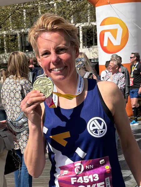 Joke Duijnisveld is een echte pro. Ze heeft al vele kilometers in de benen. Maar ook in combinatie met zwemmen en fietsen heeft ze al het nodige gepresteerd. Toch blijft de marathon van Rotterdam iets bijzonders. Helemaal met een tijd van 3:22:38.